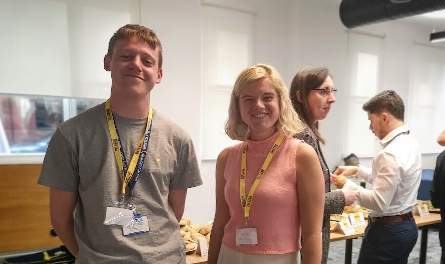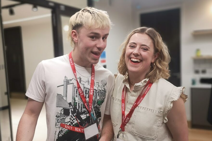 Miles Arnold, Communications Manager, and Meg Houghton Gilmour, Head of Audience sharing a light moment