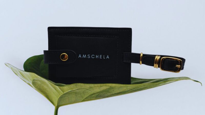 The choix luggage tag, set to be featured at the British Fashion Awards, symbolizes Amschela’s dedication to green practices and inclusivity in the luxury fashion landscape.