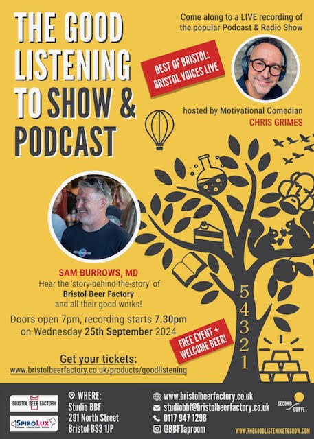 The host Chris Grimes has extended an invitation to the people of Bristol for the live recording in his comedic delivery: “You’re invited to a p*ss-up in a brewery!”