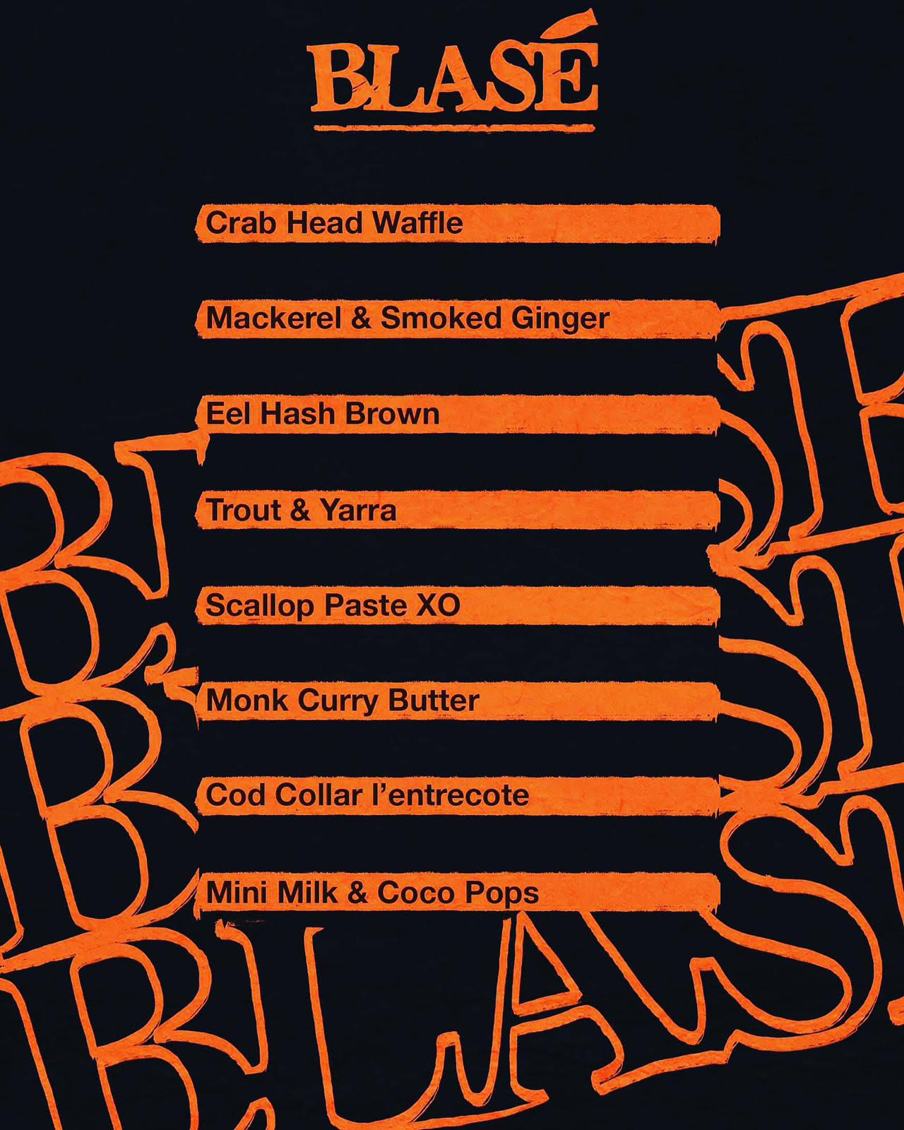 The menu at November’s Blasé event