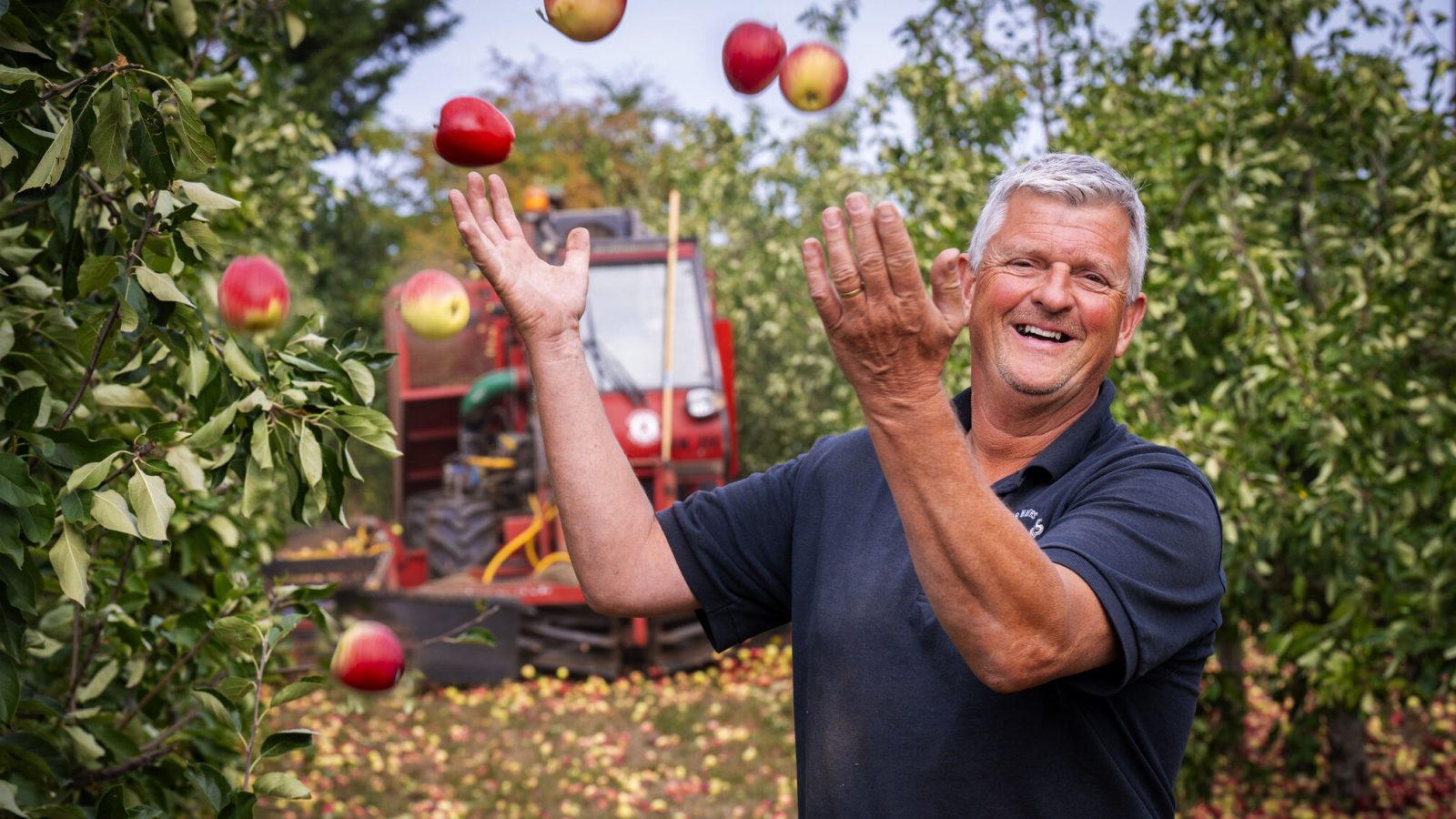 Chris Muntz-Torres, orchard manager at Thatchers Cider at the harvesting