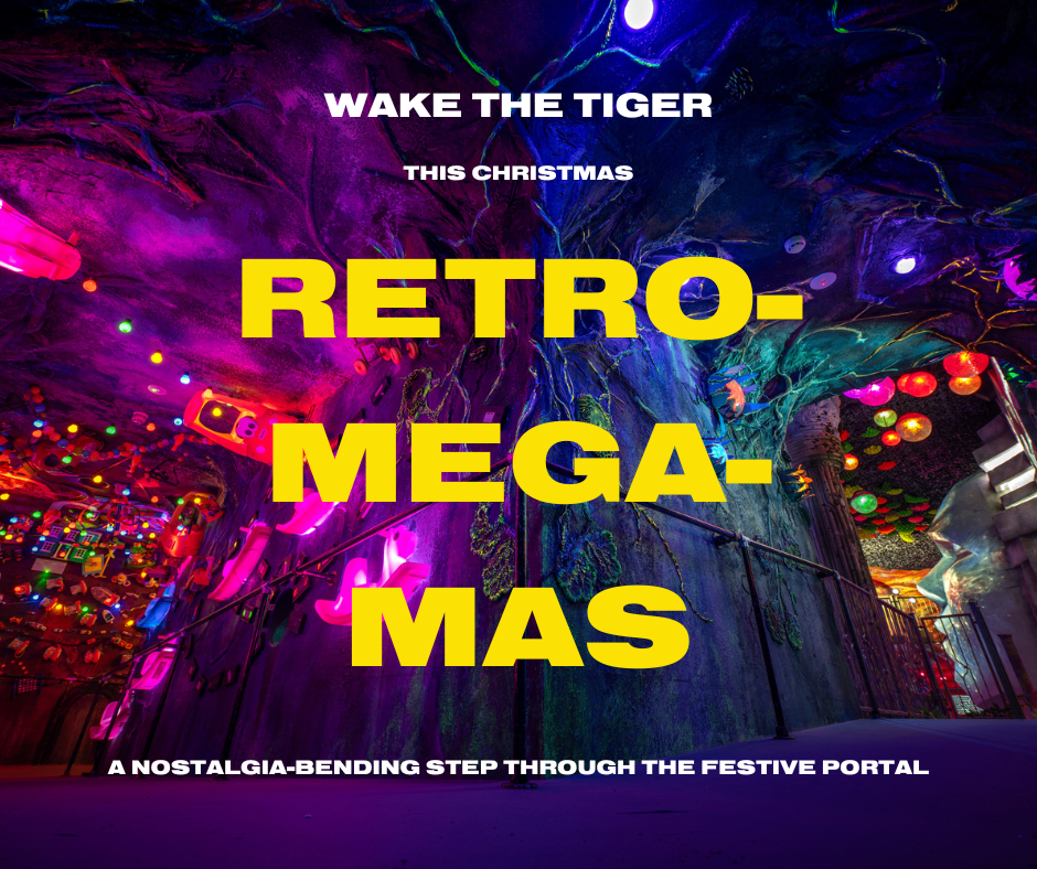 From November 9 to January 5, visitors can step into a time machine at Wake The Tiger for Retro-Mega-Mas, an immersive celebration of Christmas past.