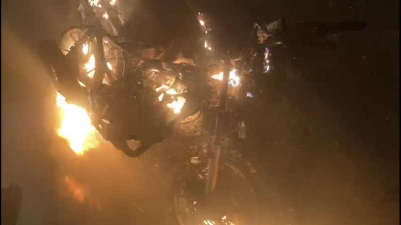 Taken from a video of an alleged Deliveroo driver’s motorbike on fire. Drivers feel that Bristol is becoming more dangerous for them as time goes on