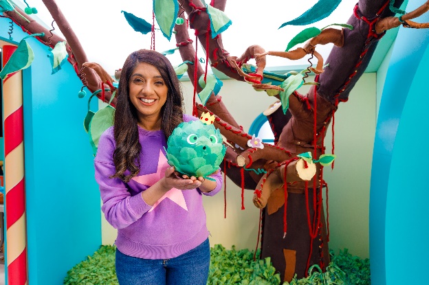 Hosted by Nim Odedra (pictured) and narrated by Stephen Mangan, the fast-paced series features fun crafting, creative baking, and playful takeovers, encouraging children to engage with learning through play