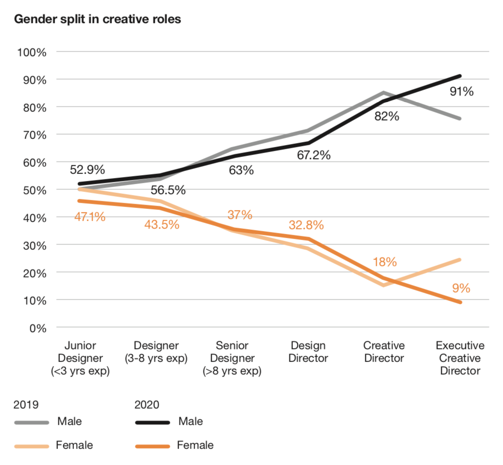 The report, published in October 2020, found that women make up 47 per cent of the design workforce in junior roles yet only nine per cent of executive creative director positions.