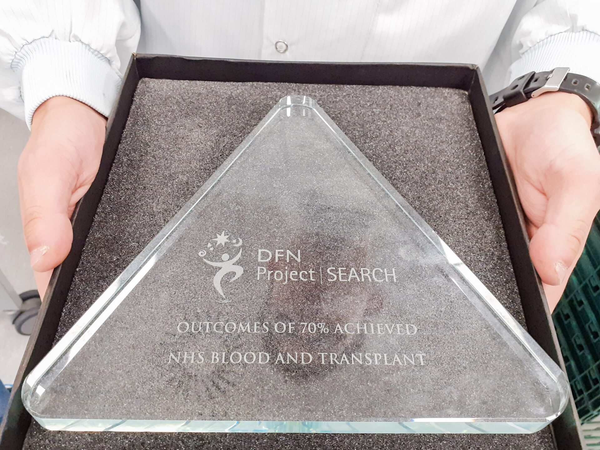 The DFN Project SEARCH, hosted at NHS Blood and Transplant (NHSBT) in Filton, was celebrated at a major conference in Leicester, where it was awarded for its impressive success rate.