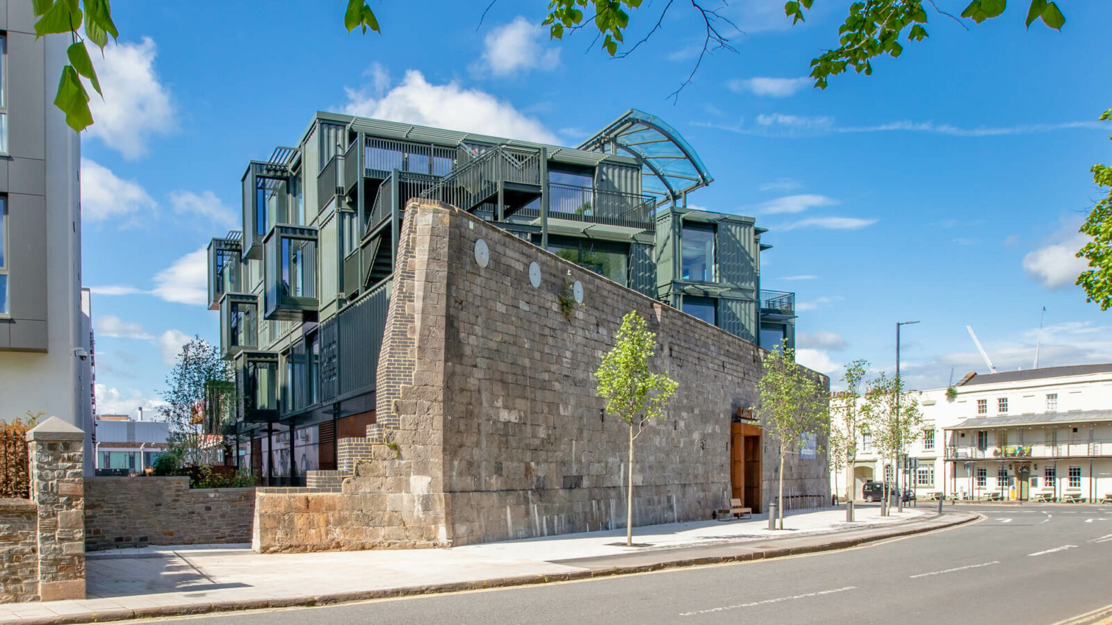 The office is is housed within the stone walls of the former J S Fry warehouse, which has now been fully restored and exposed following the removal of the roadside walls that previously ran along Wapping Road.