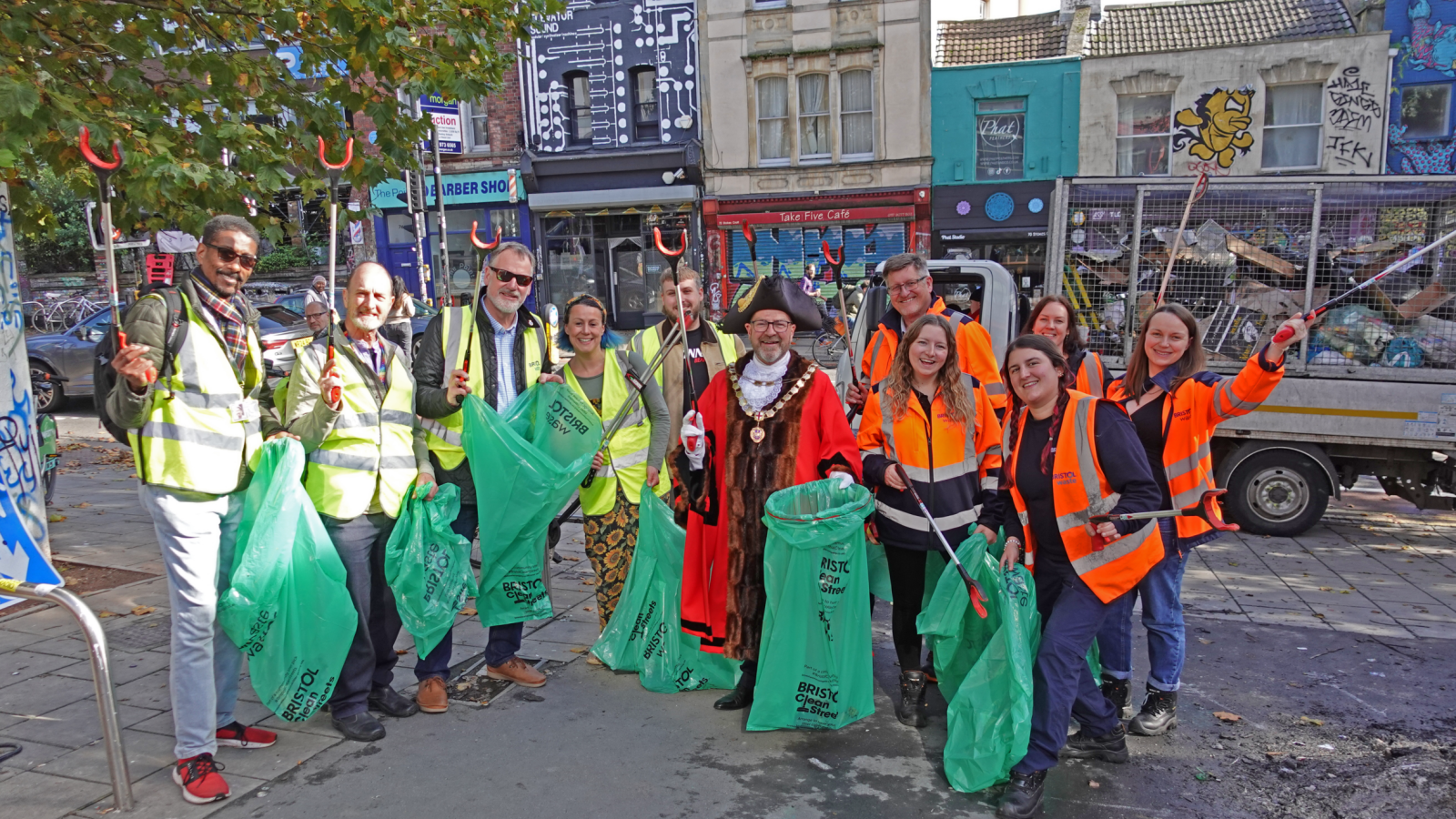 The event, attended by lord mayor Andrew Varney, Bristol Waste’s new managing director Richard Williams, and several local councillors, saw volunteers collect 14 bags of waste from streets in Stoke Croft.