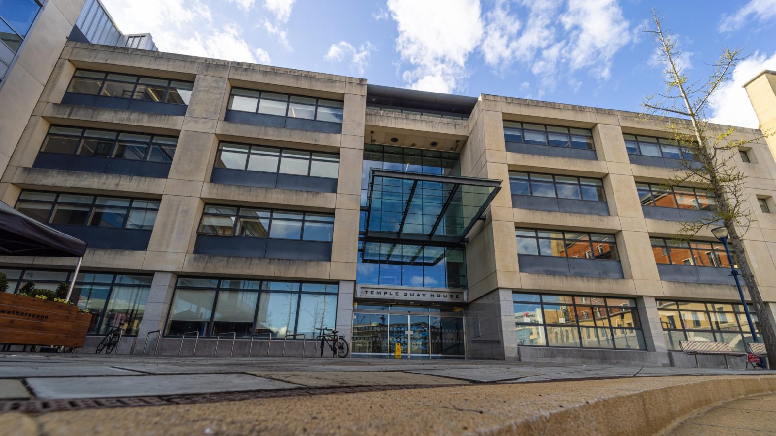 Originally constructed between 1999 and 2001, Temple Quay House is known for its distinctive triangular layout and a fan-shaped atrium.
