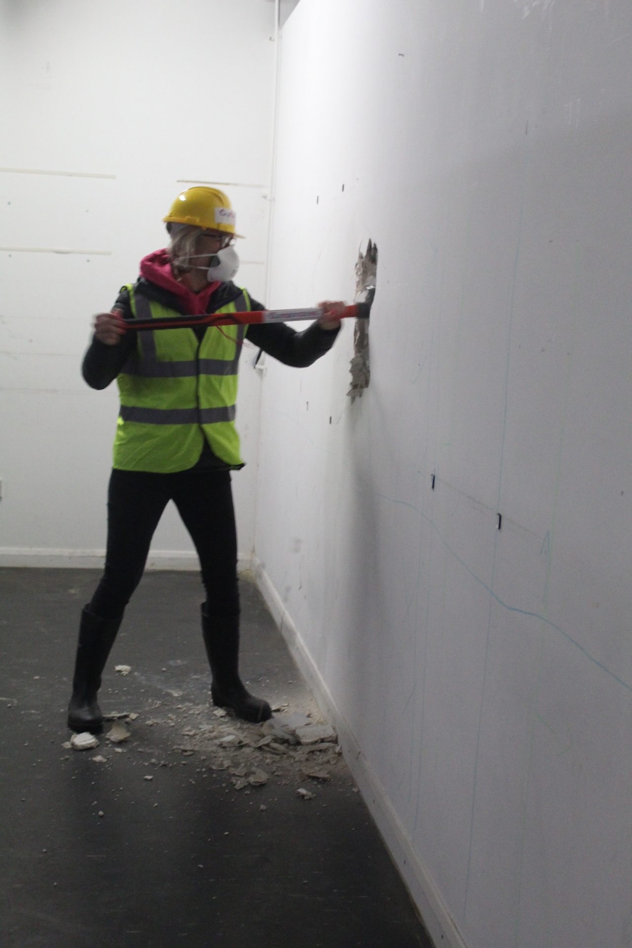 The milestone was marked by founder and chief executive Stephanie Wheen, who struck the first hammer blow to demolish an old wall.