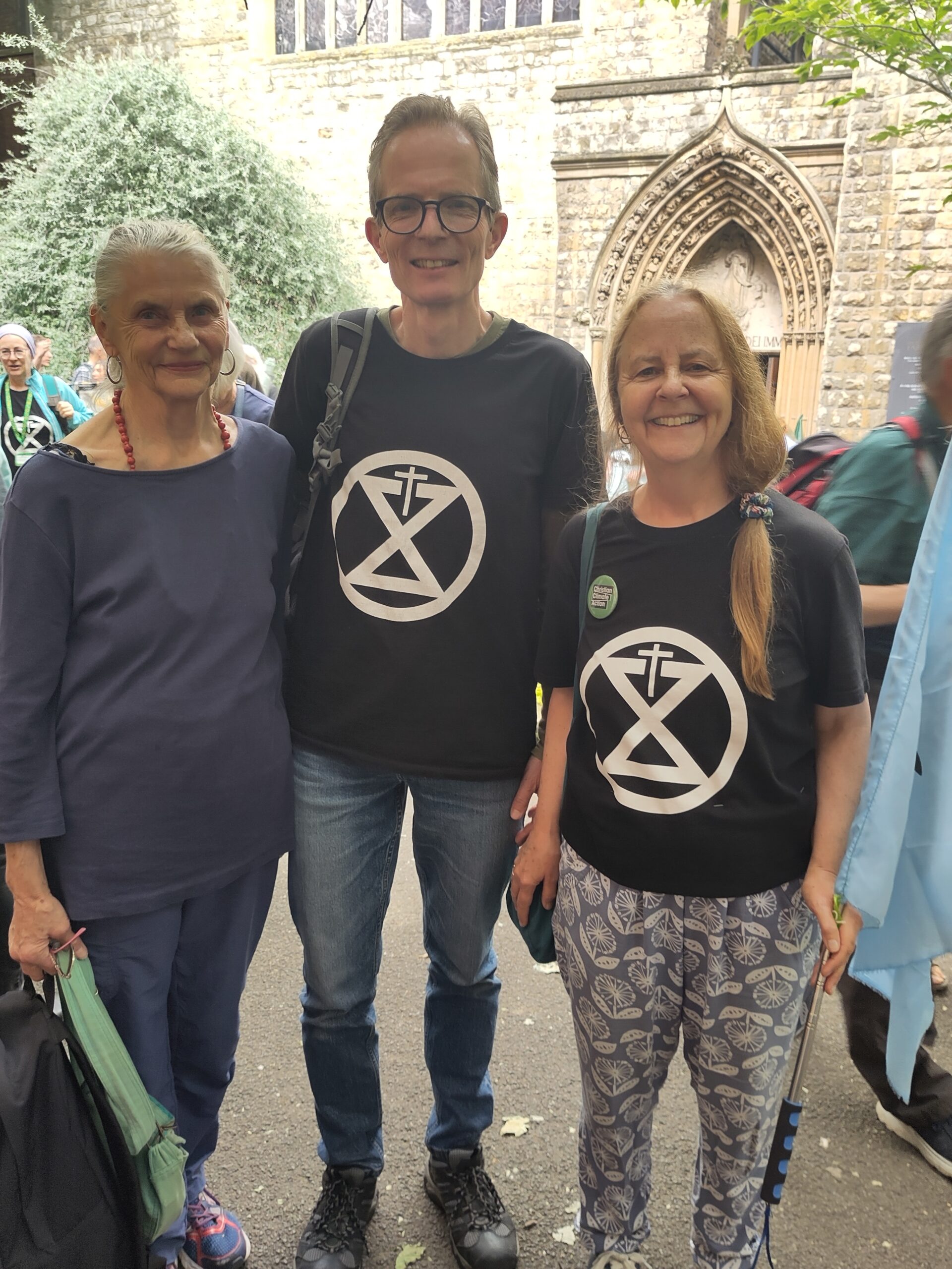 Miriam, Dave and Sarah from Christian Climate Action Bristol at the march in London – photo: CCA Bristol