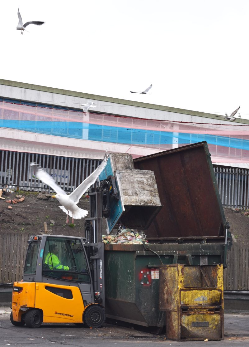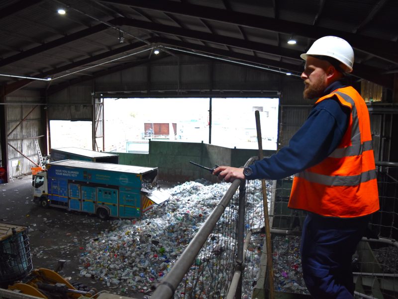 Well sorted boxes are quicker and safer to load on to the trucks which constitute high-tech bits of kit, with moving compartments that compress materials to increase capacity and are eventually lifted out by forklift for further sorting at the St Philip’s waste transfer station – a “smelly Willy Wonka’s Factory” as Hannah describes it.