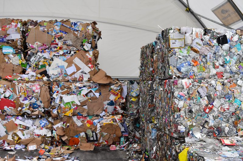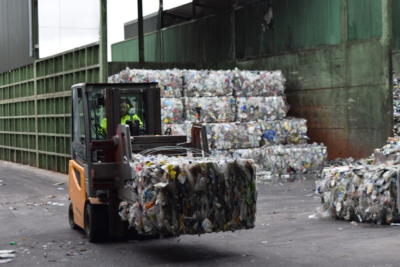 The transfer station is full of warehouses packed with bales ready to be taken for reprocessing back into usable materials