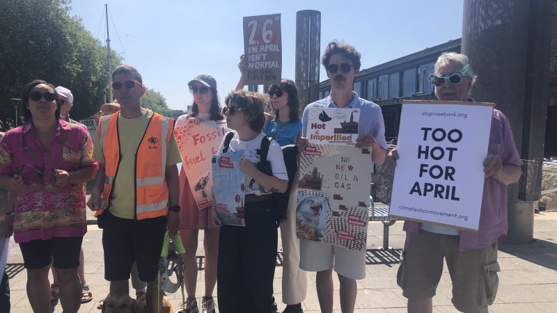 They were joined by members of Bristol Stop Rosebank to protest the licensing of Rosebank oil and gas field, in response to energy company Equinor submitting a further application – photo: Sofia Lambis