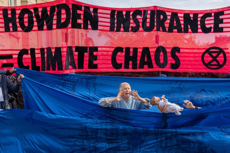 “Insurance lets oil companies destroy our planet – and you pay” their leaflets said, explaining extreme weather events have been pushing up insurance premiums in the UK – photo: Extinction Rebellion