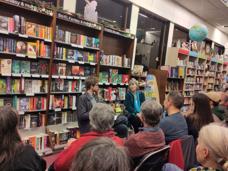 The launch event, at Stanfords on Corn Street, described the book which is a speculative fiction