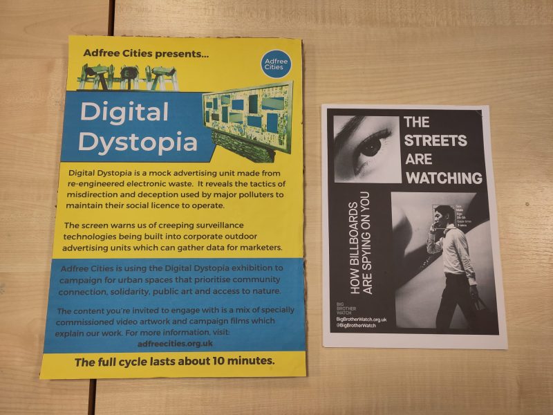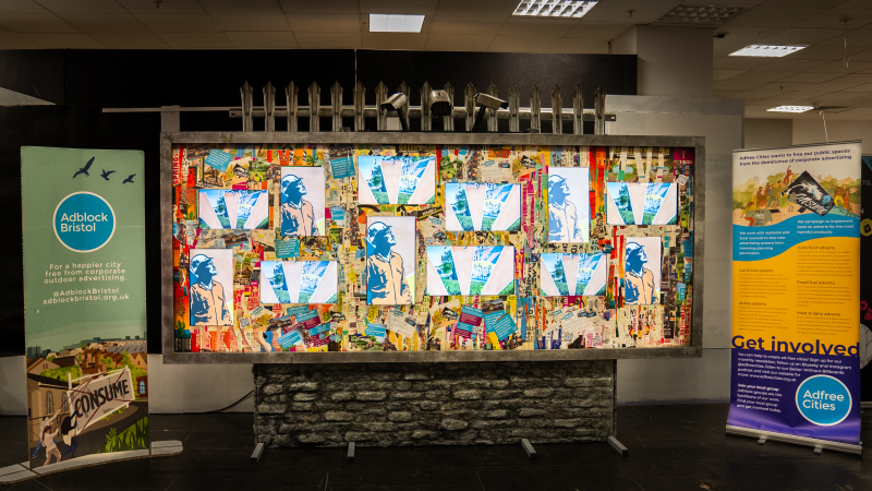 Adblock Bristol and Adfree Cities launched a new artwork, Digital Dystopia, to highlight the dangers around surveillance advertising and insidious fossil fuel ads – photo: Rik Sims