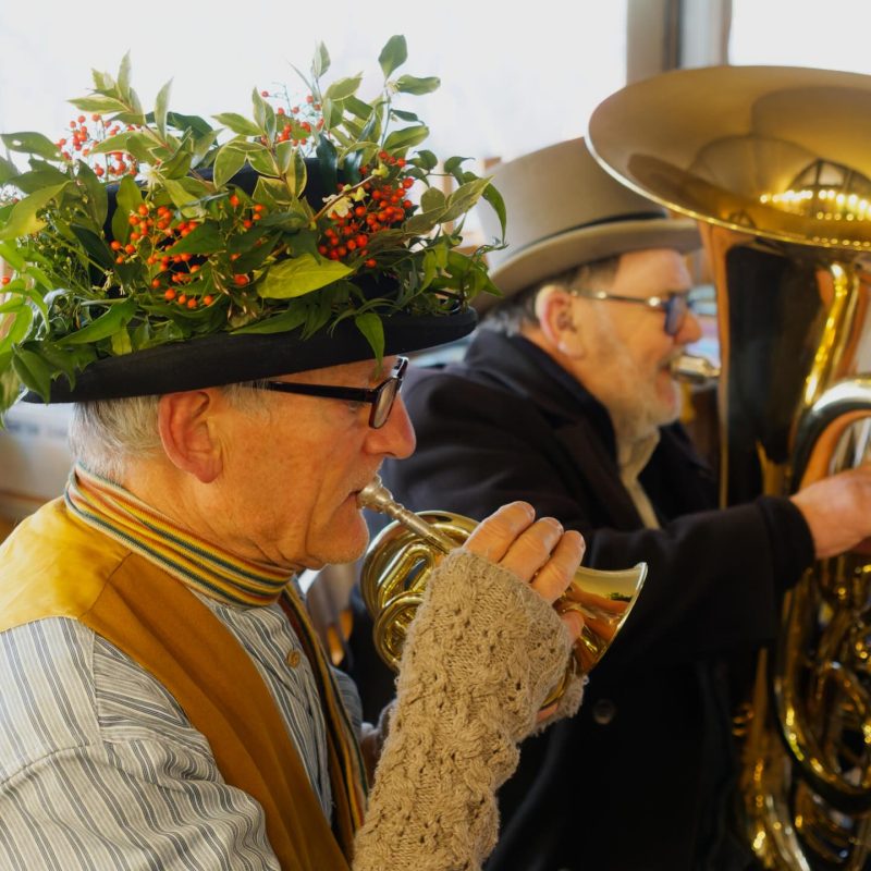 Hillfields wassail included fabulous costumes and morris dancing as well as live music and song – photo: Hillfields Community Garden