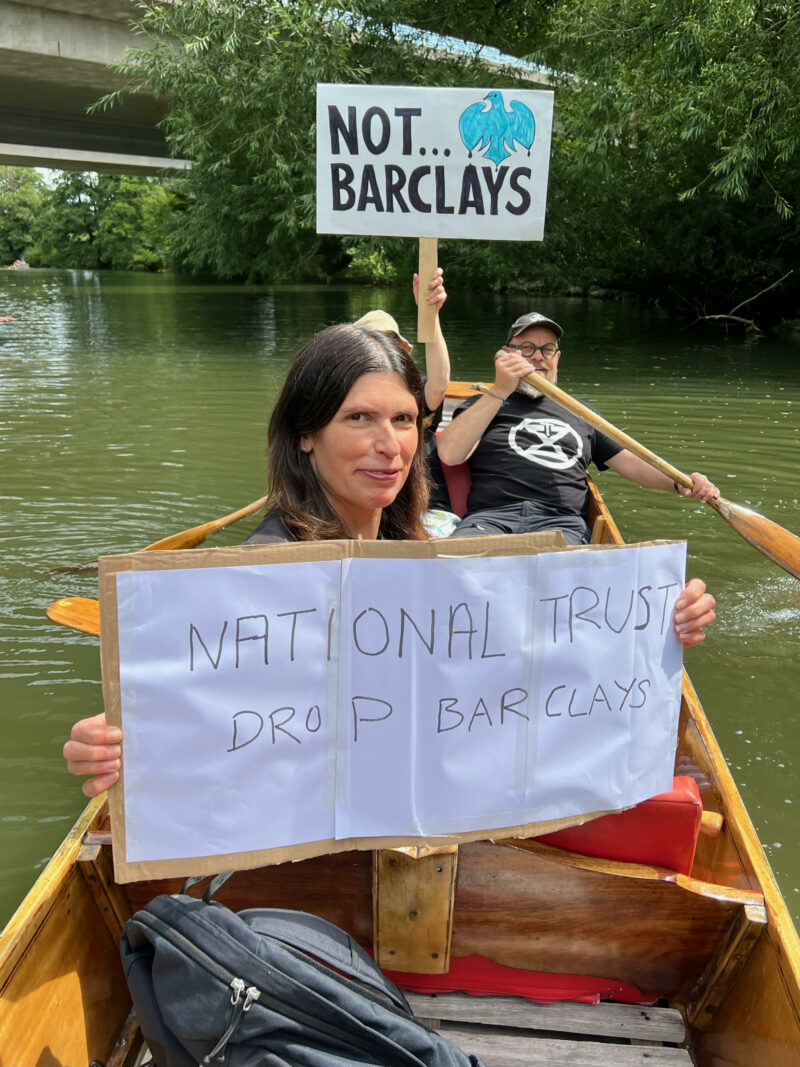 Karen Grattage (front) said: “Banking with Barclays, the biggest funder of fossil fuels in Europe, is totally at odds with [the National Trust’s] role as a protector of nature…We can’t continue to fund climate chaos which is threatening the planet and our children’s chance of survival.” – photo: Christian Climate Action