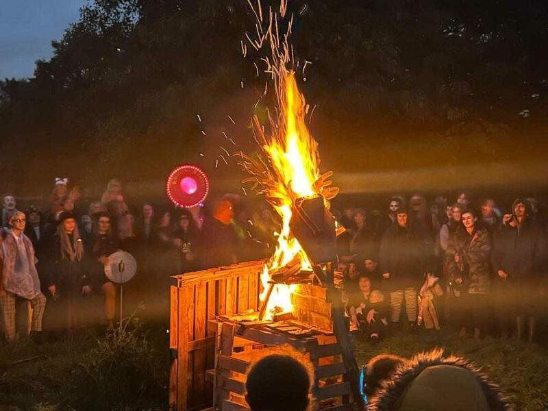Bridge Farm celebrations marking the turning of the seasons are often sell-out events. They typically culminate with the community gathering around a fire at the end of the day – photo: Jackson Moulding