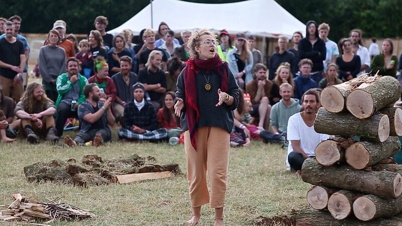 Community choir leaders Pearl Love, Molly King and Holly Jacks lead a session of harmony singing in celebration of nature, with all songs taught by ear.