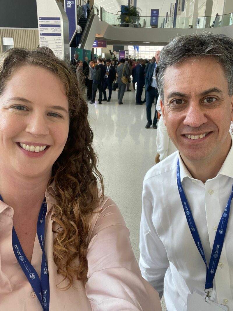Senior lecturer in climate justice at University of Bristol Dr Alix Dietzel – shown with Ed Miliband at COP 28 – appears on the podcast to try to help define the concept of a Just Transition – photo: Alix Dietzel