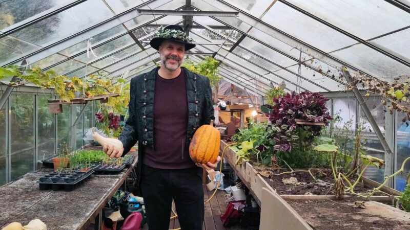Ade Taylor enjoys getting away from his computer to tend plants and grow vegetables alongside others at the farm – photo: Ursula Billington