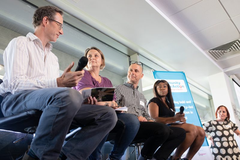 A panel consisting of Nick Gardner (Environmental Funders Network), Donna Sealey (Ambition Lawrence Weston), Mark Leach (Bristol City Council) and Euella Jackson (Rising Arts Agency) discussed how the climate action projects have improved health and wellbeing, and helped communities to overcome challenges