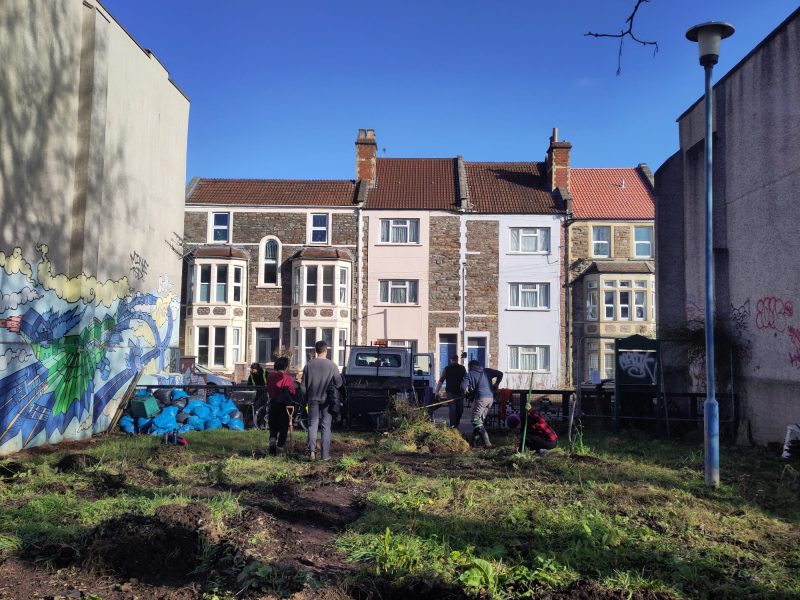 They’re currently in the ‘heavy lifting’ stage of removing dead roots and big weeds, and getting a rotovator in to level out the mounds of soil. Next, planters will be installed and then residents will be invited in to sow seeds and make the space their own.