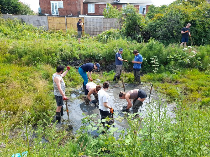Volunteers have helped to create a pond and wetland area near the sports centre, and planted hundreds of native trees in nearby fields