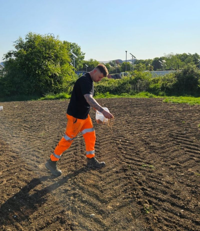 Sowing seeds on his day off, OCT site manager Billy Halfyard said: “I wanted to support this project because of the difference these local residents are making for wildlife with all the meadow areas they are creating in Lockleaze”.