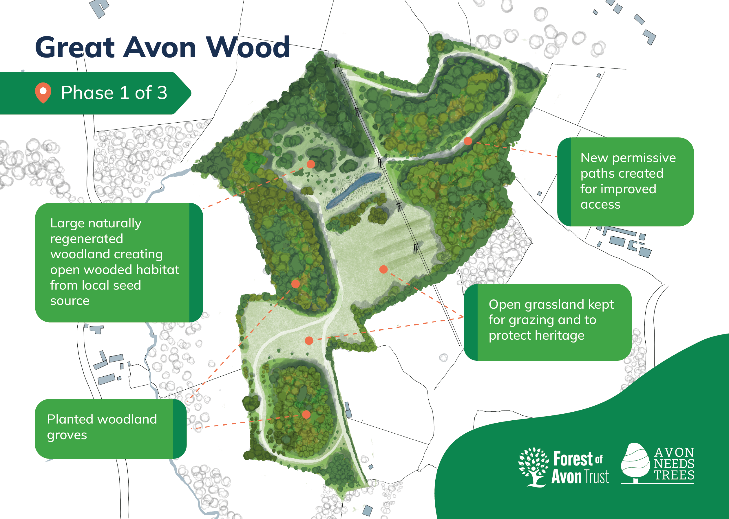 Great Avon Wood will consist of three linked preexisting woodland sites in the hopes of boosting wildlife, reducing flood risk and capturing carbon.