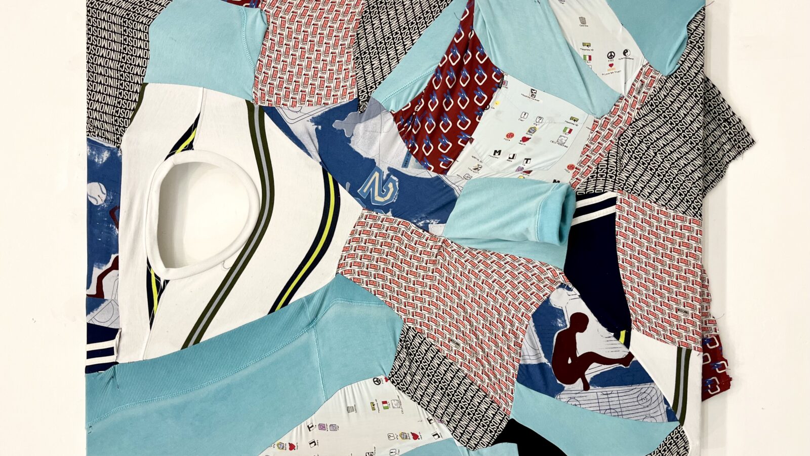 Some of the pieces shown point back to the artist’s adolescence, a time when underground culture, consumerism and music figured large in his life, filling “the voids of boredom and insecurity”.