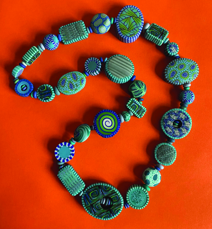 Polymer clay necklace by Caroline Casswell, which is amongst the prizes for winning stamp collectors on the trail – photo: courtesy of the artist