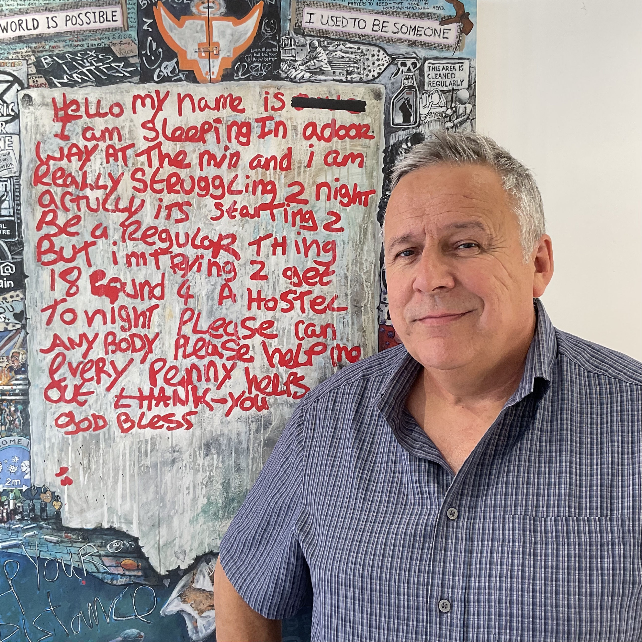 View Art Gallery owner Nick Waugh added: “When Andy came to me with this work of art it was reflective of so much of last year and the challenges many of us faced, not least the homeless. To me, the author of that note is a symbolic ‘everyman’ in that situation.
