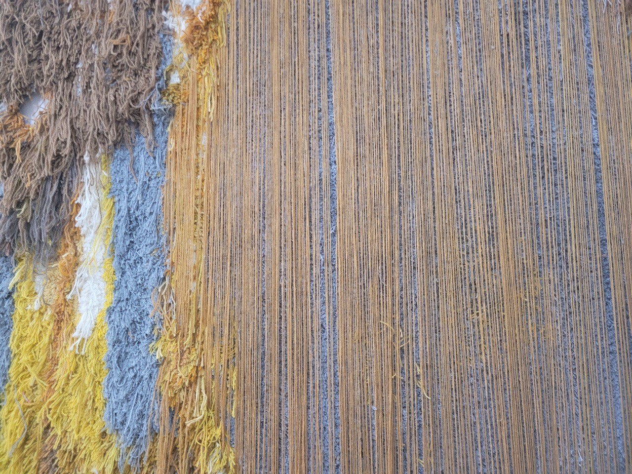 Techniques on show include weaving and spinning, rug-making, stitching and embroidery, print, knit, threading, mending and found materials, many of which have been handed down and reinvented between generations.
