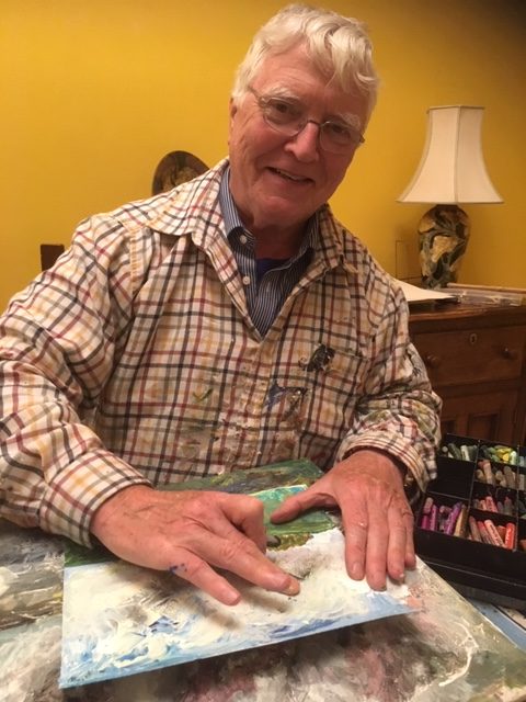 I wanted to do something creative and started with story-writing and poetry. But I knew I wanted to go back to what had heartened me as long ago as primary school – to draw and paint. It was, indeed, my first love. I knew I wanted to work with landscape and I sought courses in acrylic painting, with the encouraging and inspiring Laurel Smart, and to have my work shared with others in workshops.