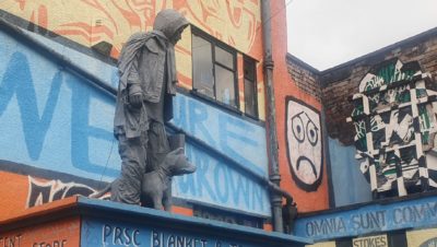 Beau says he gets his inspiration from Bristol’s sense of community. “I’m fascinated with community engagement and political engagement,” he said when we met in a city-centre café. “We all operate in our own individual bubbles, but I’m interested in how societies can communicate on a silent level.”
