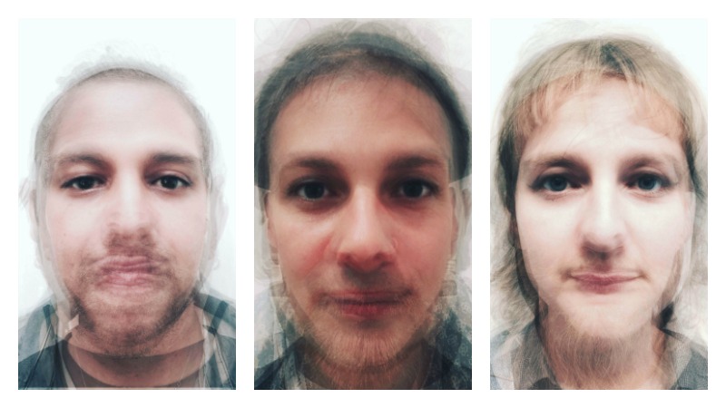 The more faces that are added over each other in Moody’s images, the more pronounced the eyes become, with the rest of the face becoming a blend of head shapes, hair styles and skin tones.