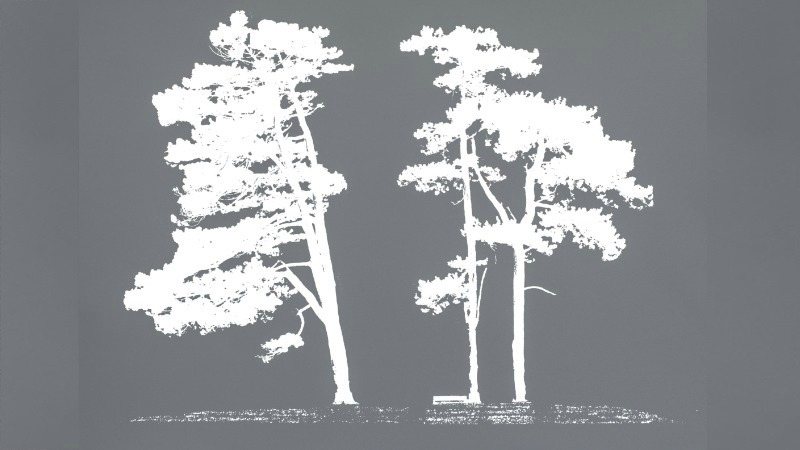Clare’s artwork is often inspired by the natural world, and the image of the towering pines said to be planted by a local doctor in commemoration of his daughters is one that repeatedly features in her prints and woodcuts – the lasercut outlines she uses to emboss her prints onto paper.