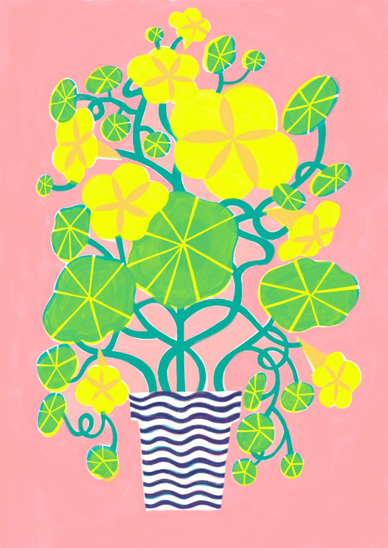 “I’m a keen gardener and have found growing to be very therapeutic. When I had an allotment at Ashley Vale, I mistakenly planted a few nasturtiums, which spread like wildfire! They are resilient, colourful and hardy, which are qualities that I thought I’d like to celebrate through this print.