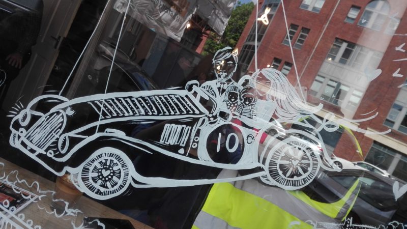 That’s when Niki, close friend of George Martin, the owner of the cafe, came up with an idea: covering the big window that they have on the front with a nice drawing to catch the attention of the passers-by. But she gave it a twist, as the drawing is not just beautiful: it tells the story of the place.