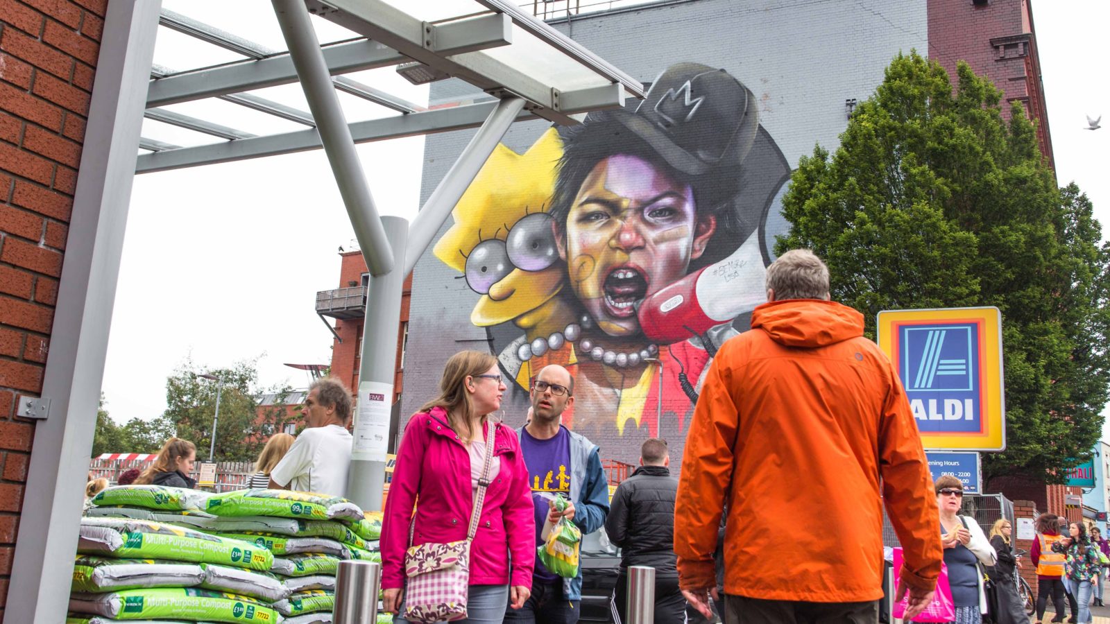 BS3’s brilliant annual street art festival returned this summer with an eye-catching double theme: a tie-in with The Simpsons, and a nod to the 100th anniversary of women’s suffrage in the UK – resulting in the eye-catching and somehow appropriate double portrait, in Aldi car park, of Lisa Simpson and a young female protester yelling into a megaphone.