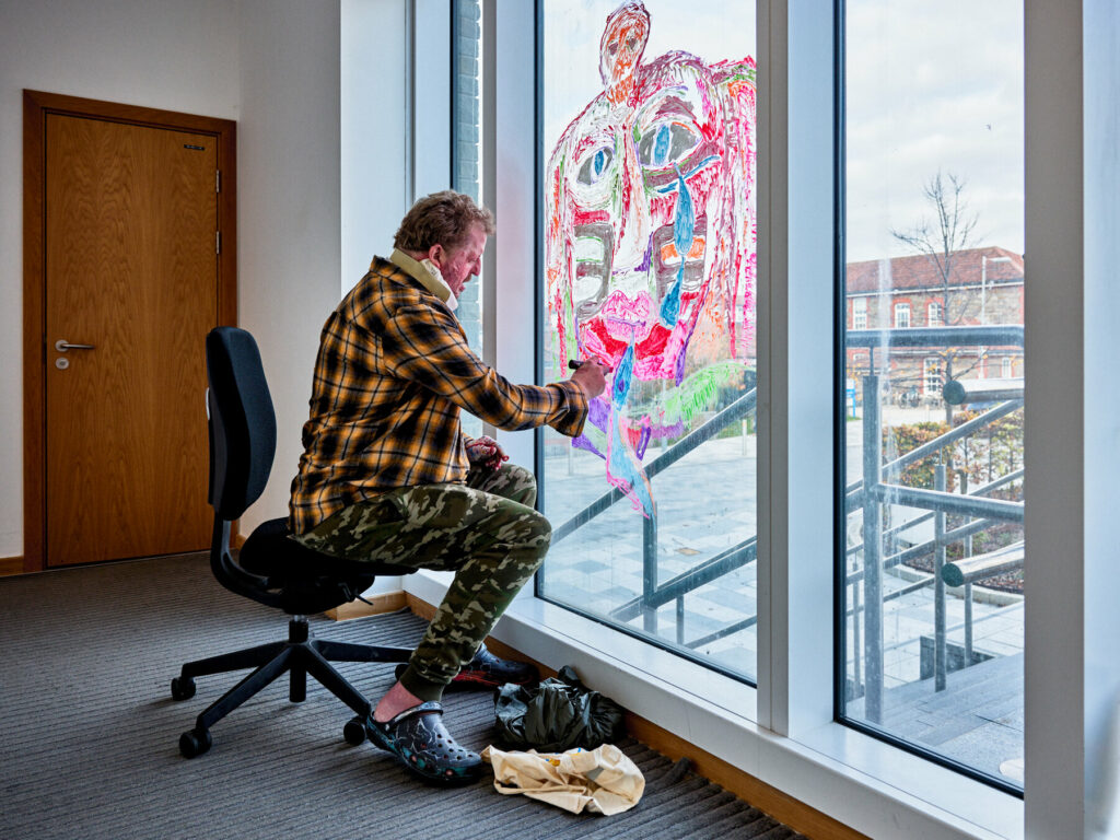Jeffrey Johns – aka Big Jeff – painting at Southmead Hospital – photo: Simon Holliday