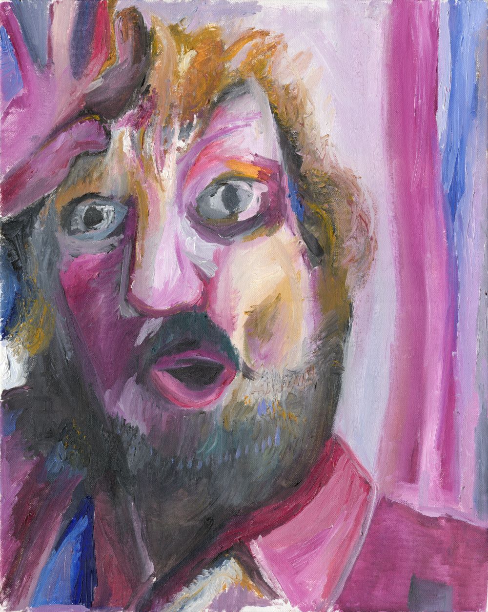 The exhibition is called ‘Stare’ and features a series of self portraits alongside a collaborative piece painted by students at Claremont School in Henleaze in response to Jeff’s art.