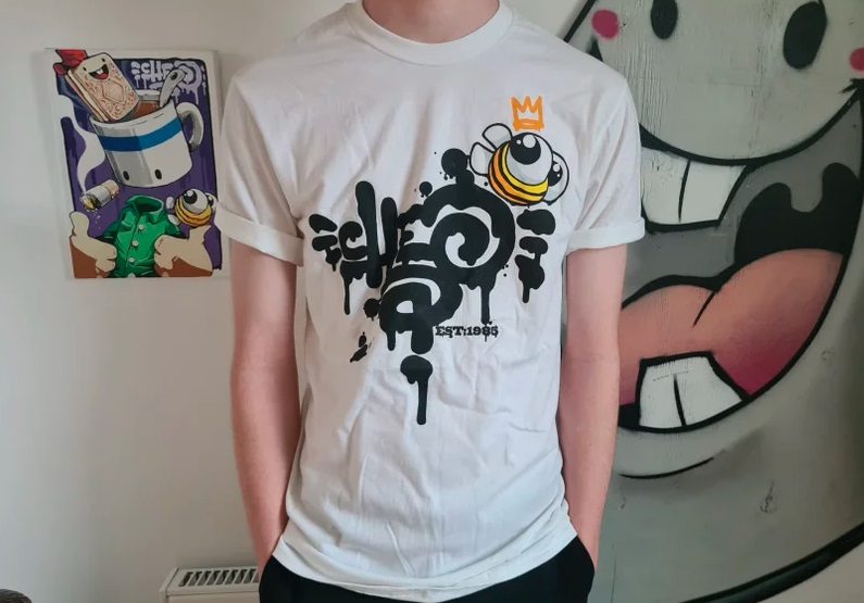 Cheo’s distinctive bee on a t-shirt – photo: Cheo
