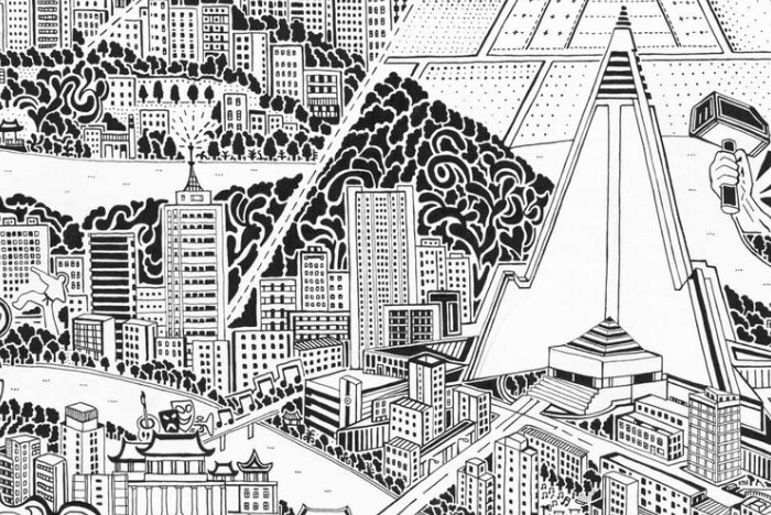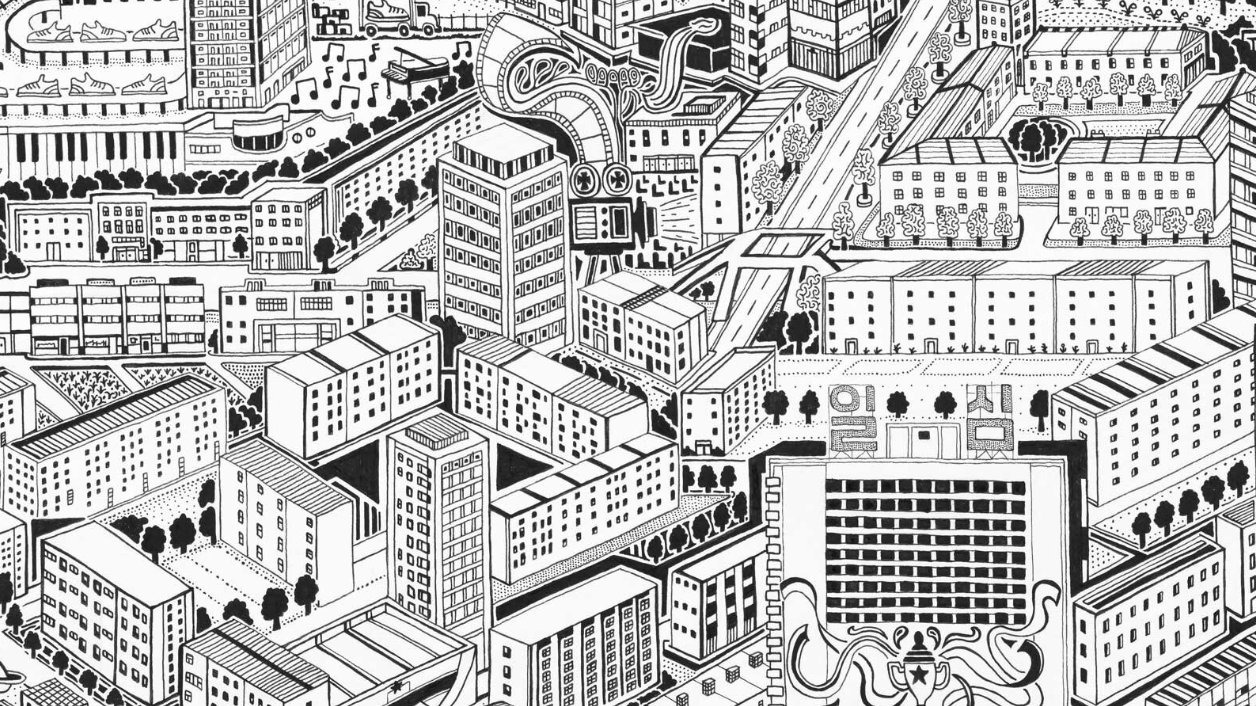 Gareth Fuller’s ‘Purposeful Wanderings’ series has already included London, Bristol and Beijing, with his newest work a unique visual representation of Pyongyang, once again playing with ideas of cartography, illustration and psycho-geography.