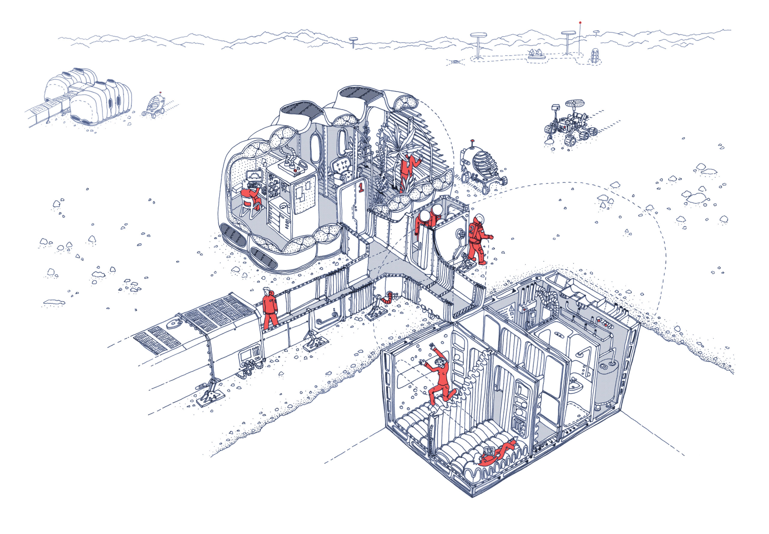 Concept sketch for Building a Martian House. Pic: Hugh Broughton Architects and Pearce+