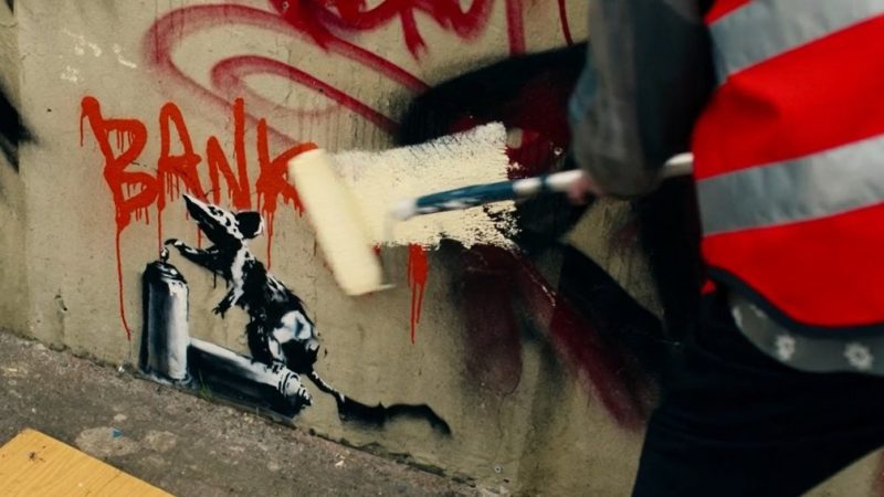 A spokesperson for The Outlaws said: “We can confirm that the artwork at the end of The Outlaws was an original Banksy, and that Christopher Walken painted over that artwork during the filming of this scene, ultimately destroying it.”