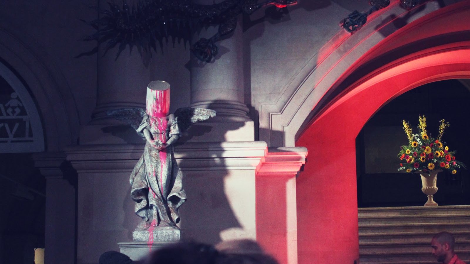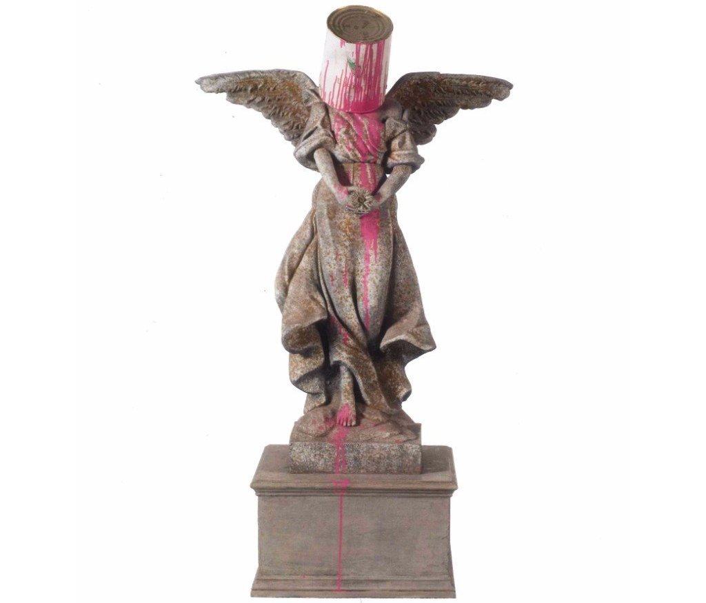 The angel sculpture was created for the Banksy vs Bristol Museum exhibition in 2009 and was left as a thank you to the venue, where it is currently on display close to the main entrance.
